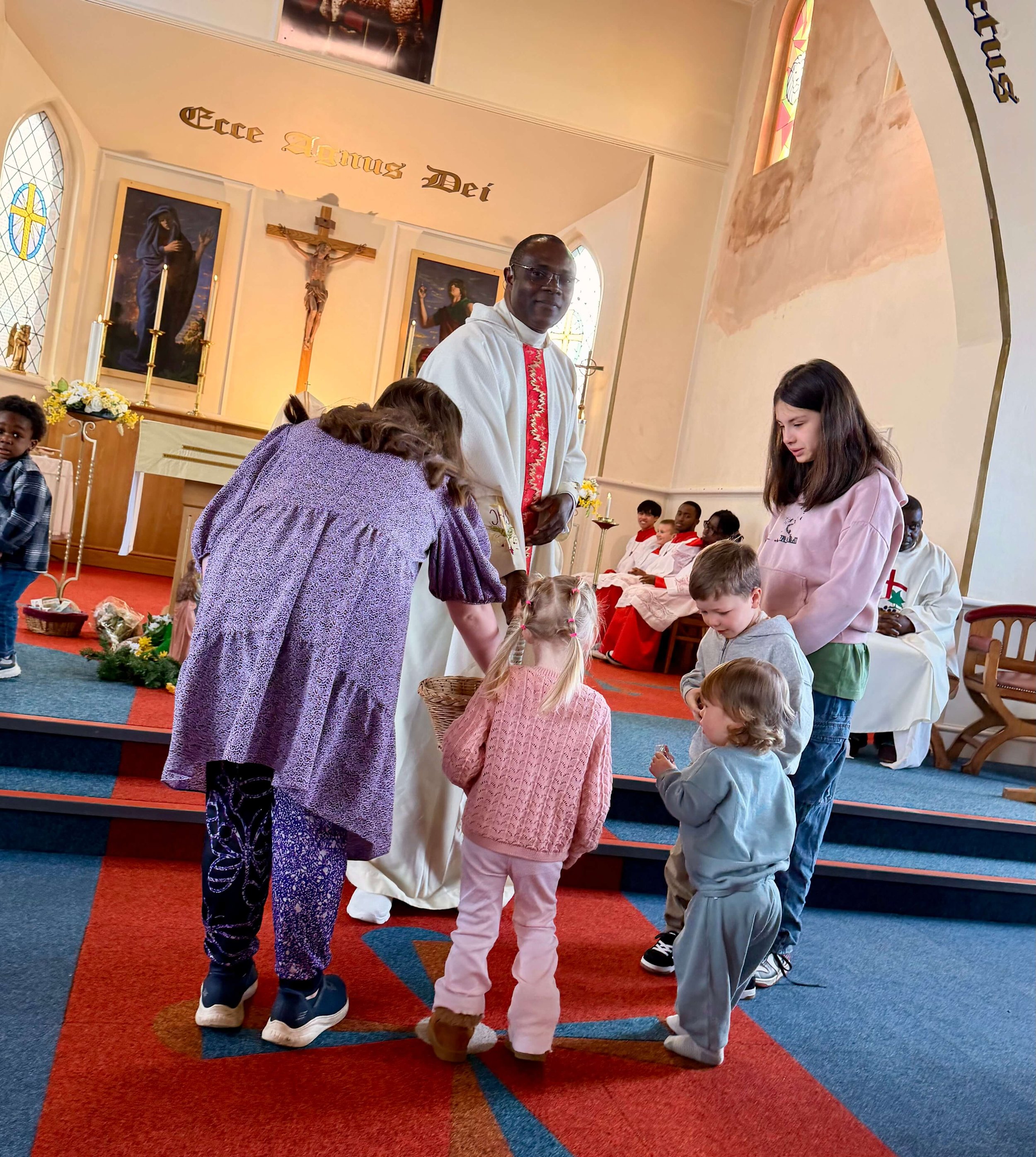 A warm and inclusive welcome set the tone: choirs led triumphant hymns, ministers offered compassionate presence at every step, and, as a parish tradition, the children were delighted to receive their Easter egg chocolates. Many received the sacraments during the celebration, and several families publicly renewed their baptismal promises — powerful signs of faith restored and hope renewed.